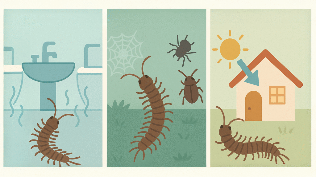 ムカデが家に入ってくる原因は「湿気・餌・隙間」の3点に集約されます。